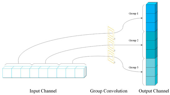 where G is the number of groups. From the Formula (17), Formula (18) can be seen as: . The operation of group convolution can greatly reduce the number of parameters and improve the calculation speed of the model.