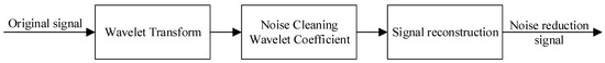 Considering the influence of the experimental environment, the collected signal contained noise, which will seriously affect the data analysis, resulting in a low model monitoring accuracy. Therefore, under the premise of ensuring the characteristics of the original signal, multiple sets of wavelet packet threshold denoising were performed on the original signal. The noise reduction process is shown in Figure 8.