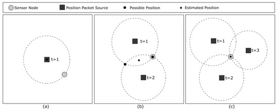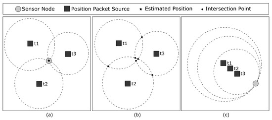 Figure 1c shows an example of poor samples, in which collinear position packets are received by a sensor node, making it impossible for the trilateration algorithm to estimate an accurate position.