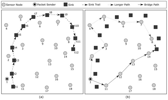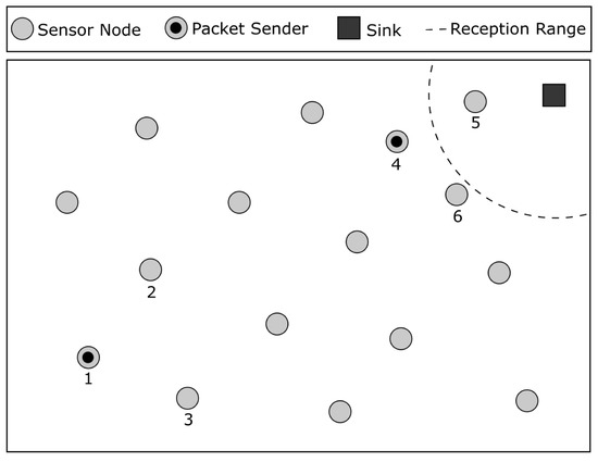 35]. The sink sends its position to nodes every 5 s. The transmission range of the sink and nodes is 185 m using breakpoint path loss [
