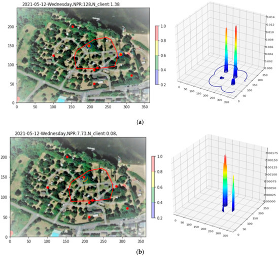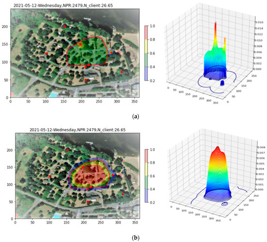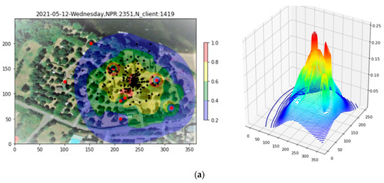 It is clear that P and P3 are site-dependent quantities, so Xbase automatically adapts to each site. Also, in the proposed treatment, the time window used is not explicitly specified. Indeed, the resulting formula for Xbase is valid for P and P3 from any time window. In particular, it is applied directly to the 3-hour windows chosen for this article, so that Xbase also adapts to each individual time window. As a caveat, the constant value X12 in the above equations must be adjusted to correspond to the three-hour time window chosen for the client density plots in the present work, i.e., X12 = 524 × (8/24) = 65.