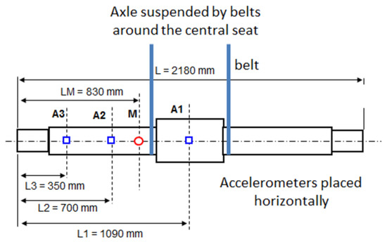 However, railway axles are one of the most critical elements, and their failure can involve catastrophic consequences. Most research in this field is limited to modelling and simulation. Recent work in this area has studied the propagation of defects in railway axles, as in [29,30,31]. The work [32] analysed the performance of different vibration directions for the detection of cracks in railway axles using numerical simulations. It was concluded that the longitudinal direction (parallel to the track) was better than the vertical direction for this purpose. In the study [33], measurements of real railway axles were acquired on an axle installed in a fatigue-testing machine, concluding that the first three harmonics of the rotational speed could be used to detect axle defects using traditional signal processing methods such as Fast Fourier Transform.