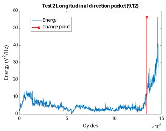 The selection of the change point also sets the threshold value set to determine that a crack exists, which, in the case of the (9,12) package, takes an energy value of 14.16 V2/Hz.
