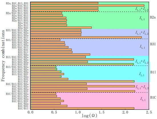 Combination modes of simultaneous eliminate I1,1 and I1,2 for B1C, B3I, and B2a frequencies.
