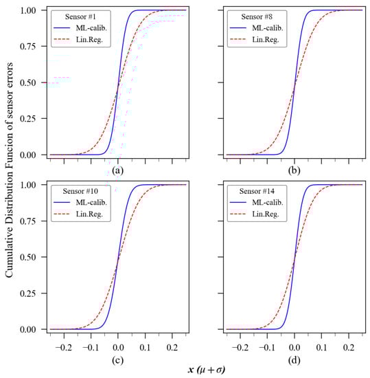 Moreover, the error distribution analysis showed that 95% of errors after ML calibration were contained within the ±10% range, in relative measurement, except for MOS sensor unit 1, with 95% of its relative errors contained within the ±22% range.