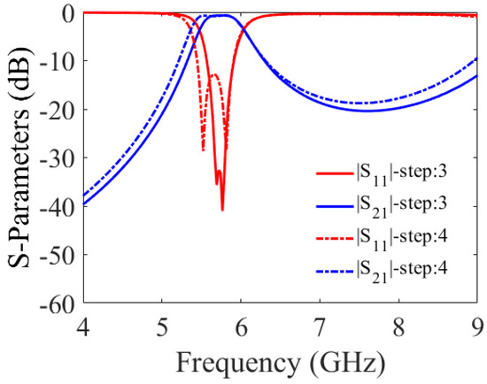S-parameters for Steps 3 and 4 of the proposed filter.