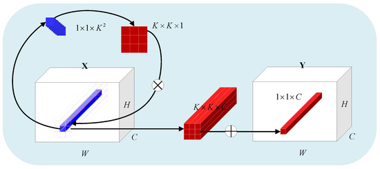 where and denote the linear transformation matrix, r is the channel reduction rate, BN is the batch normalization, Relu is the Relu activation function, and denotes the index set of coordinate (i, j). The principle of INN is shown in Figure 1, which is demonstrated as the example when G = 1.