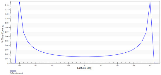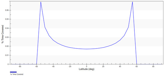 Percentage of time of coverage for the satellite of an inclination of 97.4° depending on latitude.