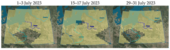 Imaging accesses of the constellation to the rivers with use of FOR in the period 1–3 July 2023.