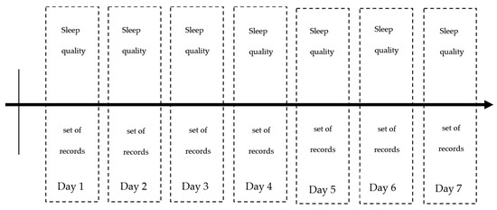 Figure 4 shows the chronology of recording and complete dataset for one participant. It consists of records of at least seven days.