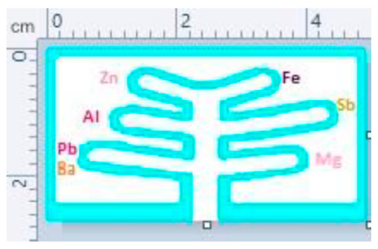 - Chabaud, K.R.; Thomas, J.L.; Torres, M.N.; Oliveira, S.; McCord, B.R. Simultaneous Colorimetric Detection of Metallic Salts Contained in Low Explosives Residue Using a Microfluidic Paper-Based Analytical Device (MPAD). Forensic Chem. 2018, 9, 35–41. [Google Scholar] [CrossRef]