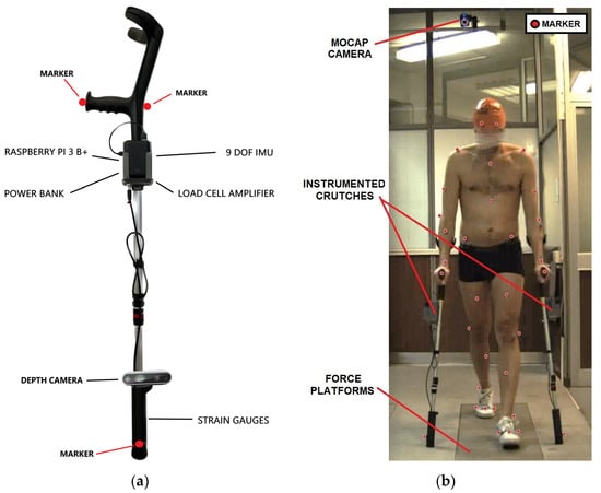 - Sardini, E.; Serpelloni, M.; Lancini, M. Wireless Instrumented Crutches for Force and Movement Measurements for Gait Monitoring. IEEE Trans. Instrum. Meas. 2015, 64, 3369–3379. [Google Scholar] [CrossRef]
