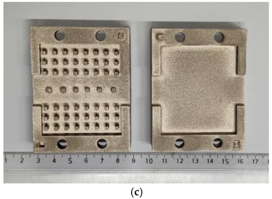 The 3D printing technique is an additive method that consists of making the desired 3D device layer by layer by means of resins, plastic filaments, metallic powders, etc. This technology is more ethical than previous CNC machining, since it generates less material waste to produce devices. The two parts of the proposed GGW bandpass filter (Figure 8a) were realized from a stereolithography-based 3D printer (Form 3B, Formalabs) and a photopolymer resin (Clear Surgical Guide Resin). This printer can achieve a layer thickness (y-axis) of 50 μm and a resolution in the (x, z) plane of 25 μm from this resin. In the same way as for the previously CNC machined filter, sidewalls, and rectangular transitions (WR-75) have been added to the structure for the measurements. Two resin-based prototypes were made. The manufacturing process of the resin-based GGW bandpass filter finishes by coating their surfaces with a conductive layer. The surfaces of one resin-based prototype were metallized using a high-vacuum thermal evaporation deposition technique, while those of the second resin-based prototype were coated by means of a conductive paint spray system.