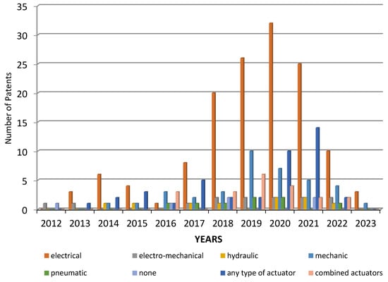 We used a long-term analysis technique to determine the types of sensors and actuation systems used in the patents published in the last decade. Then, by comparison, we determined which are predominant.