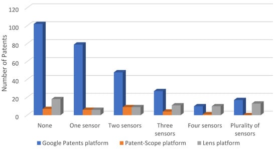 Distribution of patents on the Google Patents platform, according to the number of sensors used.