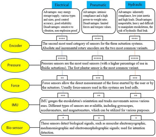 When transmitting and transforming information, the encoder plays a crucial role. It is interesting to note that nearly 24.03% of the exoskeletons contained this element. For more detailed information on the usage of encoders, please refer to Table 3.
