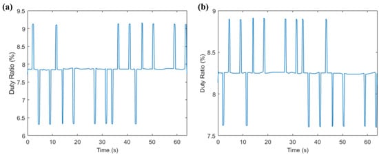 Servo duty cycle variation curve with motion time: (a) servo No. 1 and (b) servo No. 2.