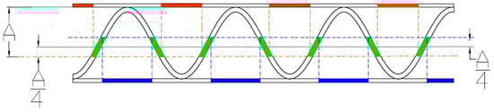 Figure 12 shows the visualization of the recognized fluting shapes of corrugated board and the thickness of individual layers for three samples, i.e., for flute C, B and E. All the geometrical features of the single-ply corrugated cardboard cross-section identified by the procedure presented in this paper are summarized in Table 1. The results are presented both in the form of measured pixels and millimeters converted in the calibration process.