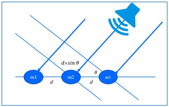 The TDOA in this study used a microphone array with a total of four microphones, and the arrangement of the microphones is in a straight line, as shown in