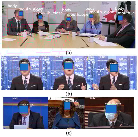 Figure 6a allow the neural network to recognize multiple people’s bodies and mouth shapes simultaneously. Video can be converted to pictures to increase the amount of data quickly. In order to avoid the dataset being too similar, a frame was captured into a picture every few seconds as shown in