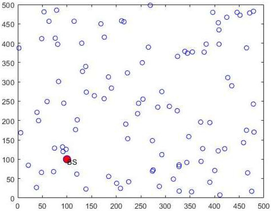 The distribution of nodes in WSN is depicted in Figure 3. Where, the red color nodes indicate the base station. In performance analysis, this research has shown the extent to which the proposed QAVOA-BPNN has been capable to deliver the required node density that is developed from the network lifetime analysis. The performance analysis of the network lifetime parameter is specified in the section below. Every node present in the network contains an equivalent priority for transmitting the data. The inequalities of internal nodes are calculated by measuring the range to which the distribution inside an economy diverges from a perfect equal distribution.