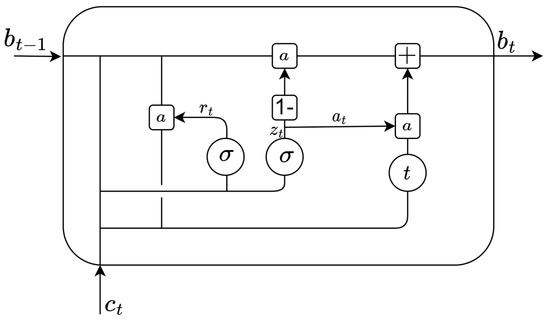 According to Figure 2, the equations [21] of GRU can be given as: