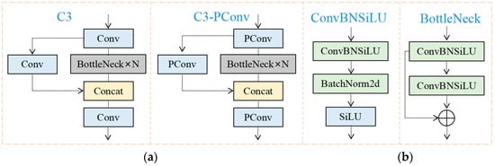 C3-PConv structure and C3 structure. (a) C3; (b) C3-PConv.