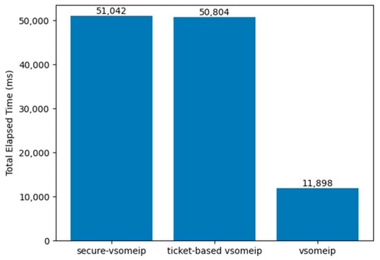 Table 1 shows the comparison among various schemes introduced so far in this paper. “Scalability” means that a scheme experiences a few changes when integrating a new node. We can know whether a scheme’s policies and keys are fine-grained through “Granularity”. “Overhead” tells how much cryptographic operational overhead occurs when the scheme is applied, and we can know whether or not a scheme is compatible with the current SOME/IP protocol by looking at “Compatibility”. Finally, “Efficiency” shows if the required additional operation is applied only for a node that needs it. Ticket-based SOME/IP indicates the novel scheme we are proposing in this paper. Ticket-based SOME/IP and SESO-AS support high scalability thanks to the leveraging of an additional server. As ticket-based SOME/IP and Secure SOME/IP manage keys and policies per node; they are fine-grained granularity. For the overhead aspect, Secure SOME/IP and SESO-RC have high overhead because of public key cryptography operation. Ticket-based SOME/IP and Secure SOME/IP can select whether a security expansion applies or not per service, which assures compatibility with the current SOME/IP protocol. Secure SOME/IP makes a 1:1 connection with every node if it can use SOME/IP. SESO-AS’s authentication server makes containers for every node that can use the service. For these reasons, “Efficiency” is marked as “Low” for Secure SOME/IP and SESO-AS.