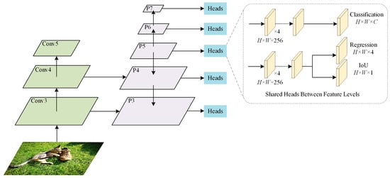 The structure of the detector is shown in Figure 6; it is similar to that in FCOS and ATSS, but the auxiliary branch is an IoU branch, and this structure is the same as the one used in PAA.