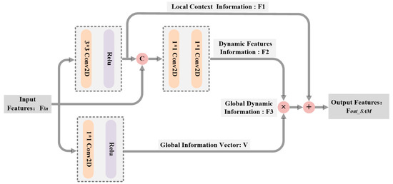 The enhanced feature via SAM is then gained by fusing local static feature and global dynamic feature :