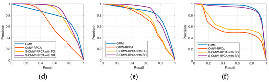 The advantage of online implementation with respect to the MW-RPCA lies in the fact that, for each new frame, only Equation (9) must be minimized with respect to two vectors, which requires remarkably less time than the minimization of Equation (4) with respect to two matrices. In addition, the update of is in closed form and does not have to be accomplished in an iterative way, therefore, adding very small computational load.