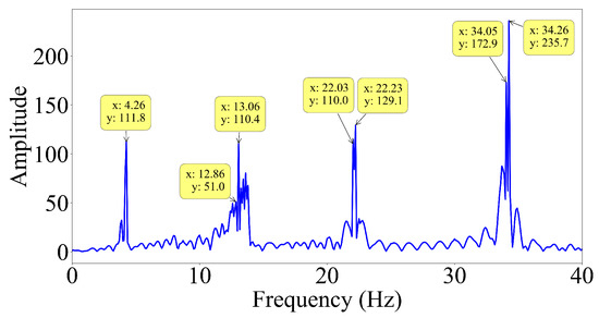 The final approach used in mode shape estimation is based on using a signal decomposition technique to extract the bridge’s modal components from the vehicle’s acceleration response and determine the mode shapes by applying the Hilbert transform (HT) to the obtained components. Yang et al. [35] conducted the pioneering work using this approach where the modal components of bridge are extracted using a digital filter such as band-pass filter [35,36,37,38], elliptic filter [39], or a recently introduced two-peak spectrum idealized filter [40]. Alternatively, a blind source separation algorithm such as empirical mode decomposition (EMD) [41] or variational mode decomposition (VMD) [42] can be used to extract the narrow-band components of the vibrations measured on the vehicle that correspond to the bridge modal frequencies. Some researchers [36,41] combined this mode shape identification technique with impact excitation, as described in [16]. Tan et al. [37] proposed an algorithm for adjusting the shifted mode shapes caused by bridge damping and applied it to detect bridge damage using mode shape squares [38]. Furthermore, Yang et al. [43] argued that the contact-point (CP) response does not contain vehicle frequencies that hamper identifying the bridge mode shapes and frequencies. This observation was verified through numerical simulations [43] and an in situ test [44] and use of CP response to estimate the mode shapes has become more popular afterwards [23,39,42,43,44,45,46].