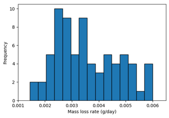 Distribution of mass loss rate (i.e., degradation rate) obtained from monthly removed coupons.