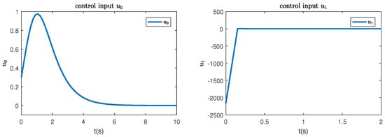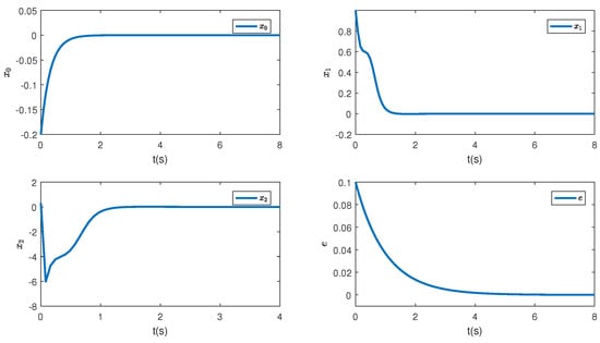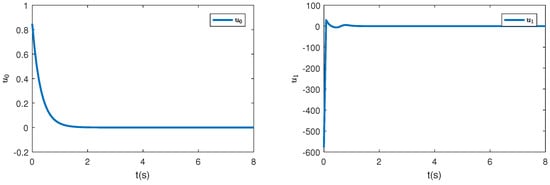 where is an unknown parameter. The original goal of this simulation is to design control inputs , such that when . There is no loss of generality in assuming initial state nonzero. Then system (47) is further divided into two subsystems: