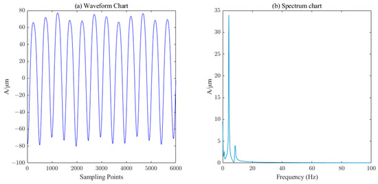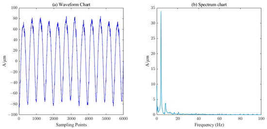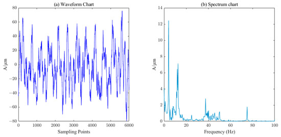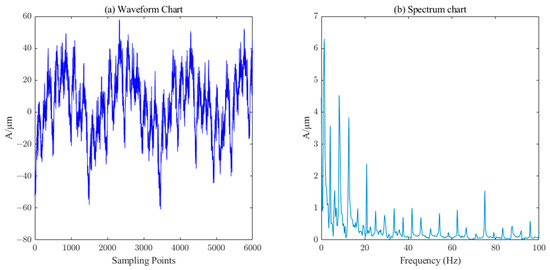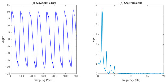 Waveform and spectrum chart of real signals of water–guide–bearing swing.