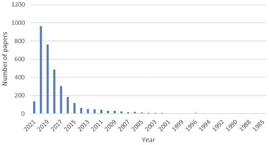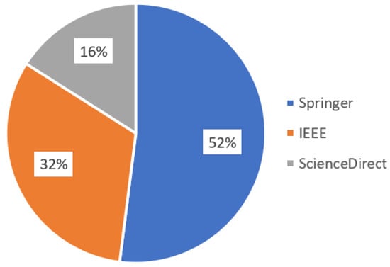 The research was carried out in a period ranging from 01/1985 to 01/2021 using three databases, IEEE (Institute of Electrical and Electronics Engineers) Digital Library, Science Direct, and Springer Link, obtaining a total of 4334 papers as illustrated in Figure 1. From the analysis of the data in Figure 1, studies published before 2015 were discarded due to the low distribution of articles in the early years and the constant evolution of technology, totaling 2952 documents, whose percentage distribution is shown in Figure 2.