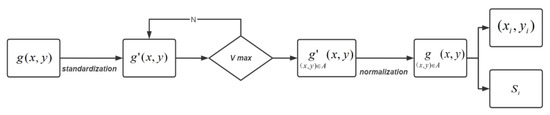 The variables and in Equation (19) represent the step along the two coordinate axes. The flow of the spectral reconstruction algorithm is depicted in Figure 4.
