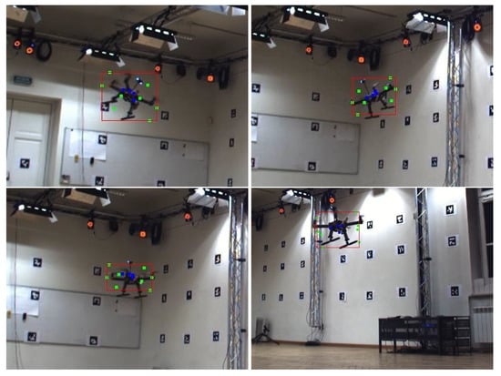 Three separate recordings, each with a different flying quadrotor drone, were used for training and testing. The selected models are a custom-made one with the CUBE Orange flight controller (Figure 5a), an “X500 V2”-based one with HolyBro 6C (Figure 5b), and a DJI Mavic 2 (Figure 5c). In total, around 18 000 frames were obtained using four calibrated and synchronized RGB cameras with Full HD, 25 fps.