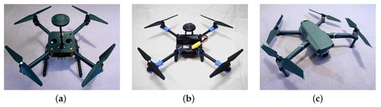 Physical drones used in the dataset. (a) Custom made. (b) X500 V2. (c) DJI Mavic 2.