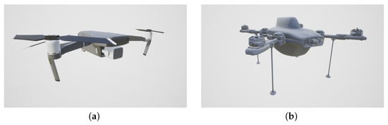 Virtual drones used in the dataset. (a) DJI Mavic 2. (b) Custom designed.
