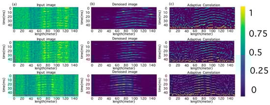 (a) Original image; (b) the results of autoencoder processing; and (c) the results of adaptive correlation.