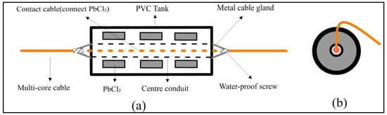 Non-polarized electrode receiving array: The conventional non-polarized electrode employs vertical bottom contact, which can easily topple and suffer from seawater corrosion in the beach region, thereby affecting the stability of electric signal reception. To address this, we have designed a horizontally positioned multipoint attachment non-polarizing electrode as depicted in Figure 3. The towing cable is linked to the electrode within the reserved pipe in the electrode body’s middle, piercing out at both ends. The reserved pipe is then injection-molded and sealed to ensure waterproofing and corrosion resistance. Multiple integrated non-polarized electrodes are linked to the towing cable at predetermined electrode distances to form the non-polarized electrode receiving array. During the towing process, the cable and non-polarized electrode on the receiving array are influenced by gravity. This results in the towing process being tightly intertwined with the mud and sand on the beach surface, thereby enhancing the stability of the received electric signal.