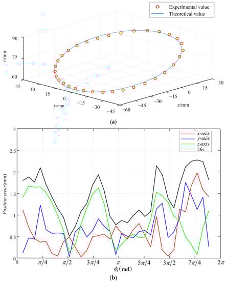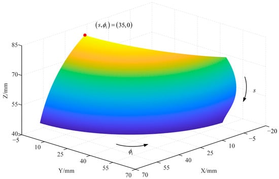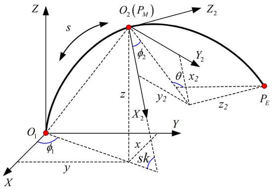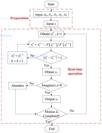 The multiset (s, x1) can be obtained by Newton’s iteration method. The s and x1 obtained from the solution are input into (13) and (12) in turn to obtain the rotation angle ϕ1 of the compound part, and the coordinate values of are obtained by inputting the solutions into (17); then, ϕ2 and θ are obtained from (9) and (10), respectively.
