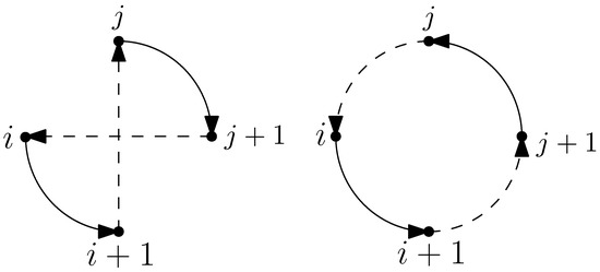 Given a solution, the 2-opt algorithm, introduced by Croes in 1958 [74], is a local search heuristic that explores all possible 2-Exchange neighborhoods of the solution. Its objective is to gradually enhance a feasible tour by iteratively swapping two edges in the current tour with two new edges, aiming to reach a local optimum where no further improvements are possible. During each improving step, the 2-opt algorithm selects two distinct edges that connect and from the tour. It then replaces these edges with the edges connecting and , provided that this change reduces the tour length. This process continues until a termination condition is encountered (See Figure 4).