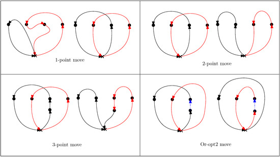 - Helsgaun, K. An effective implementation of the Lin–Kernighan traveling salesman heuristic. Eur. J. Oper. Res. 2000, 126, 106–130. [Google Scholar] [CrossRef] [Green Version]