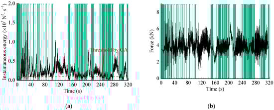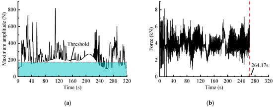 ST-based editing method: (a) Maximum amplitude spectrum based on ST; (b) Accelerated spectrum of the force signal.