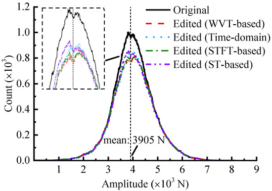 Based on the same pseudo-damage retention (97%) and statistical parameters limitation (<15%), some existing mainstream methods, such as time-domain editing, STFT-based, and ST-based are performed to edit the same signal in order to validate and compare the editing efficiency.