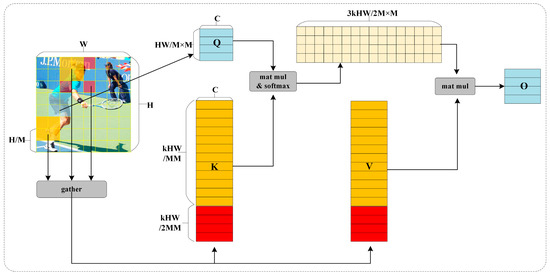 where the operation represents the aggregation of the scattered related regions and corresponding to the same query region, is the key tensor after aggregation, and is the value tensor after aggregation.