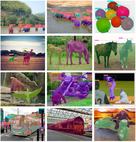 - Lin, T.Y.; Maire, M.; Belongie, S.; Hays, J.; Perona, P.; Ramanan, D.; Dollár, P.; Zitnick, C.L. Microsoft coco: Common objects in context. In Proceedings of the Computer Vision–ECCV 2014: 13th European Conference, Zurich, Switzerland, 6–12 September 2014; Proceedings, Part V 13. Springer International Publishing: Berlin/Heidelberg, Germany, 2014; pp. 740–755. [Google Scholar]