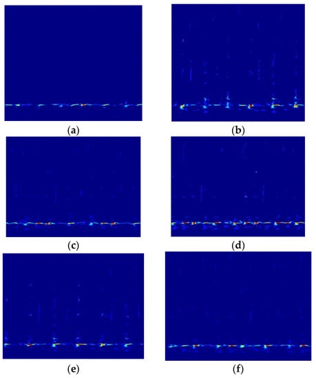Time-frequency diagram of 10 fault statuses. (a) Status 1; (b) Status 2; (c) Status 3; (d) Status 4; (e) Status 5; (f) Status 6; (g) Status 7; (h) Status 8; (i) Status 9; and (j) Status 10.